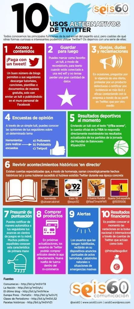 10 razones más para utilizar Twitter by Rafael posted on octubre 16, 2014 in Marketing Digital, Social Media Desde Seis60.com, les dejo esta infografía sobre algunas razones de peso para utilizar twitter, si todavía no tienes cuenta. Previous Post Back Next Post